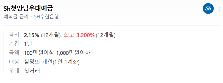 🐟 SH수협은행 Sh첫만남우대예금 – 첫거래 고객에게 강추