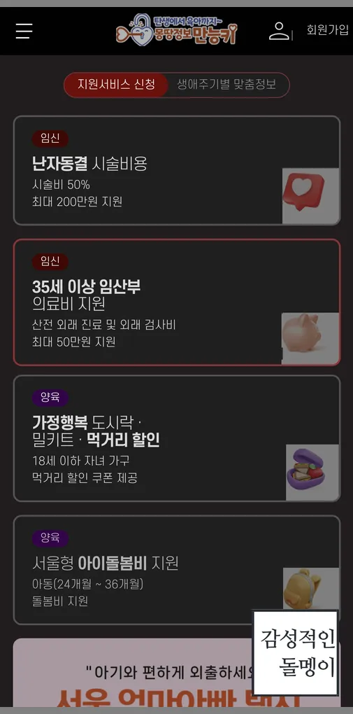 - 민간 돌봄: 지정된 기관 선택 및 회원가입