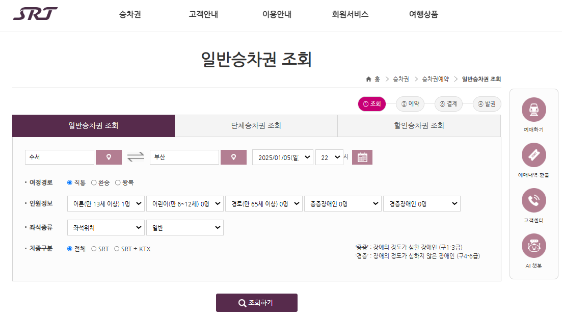 SRT예매