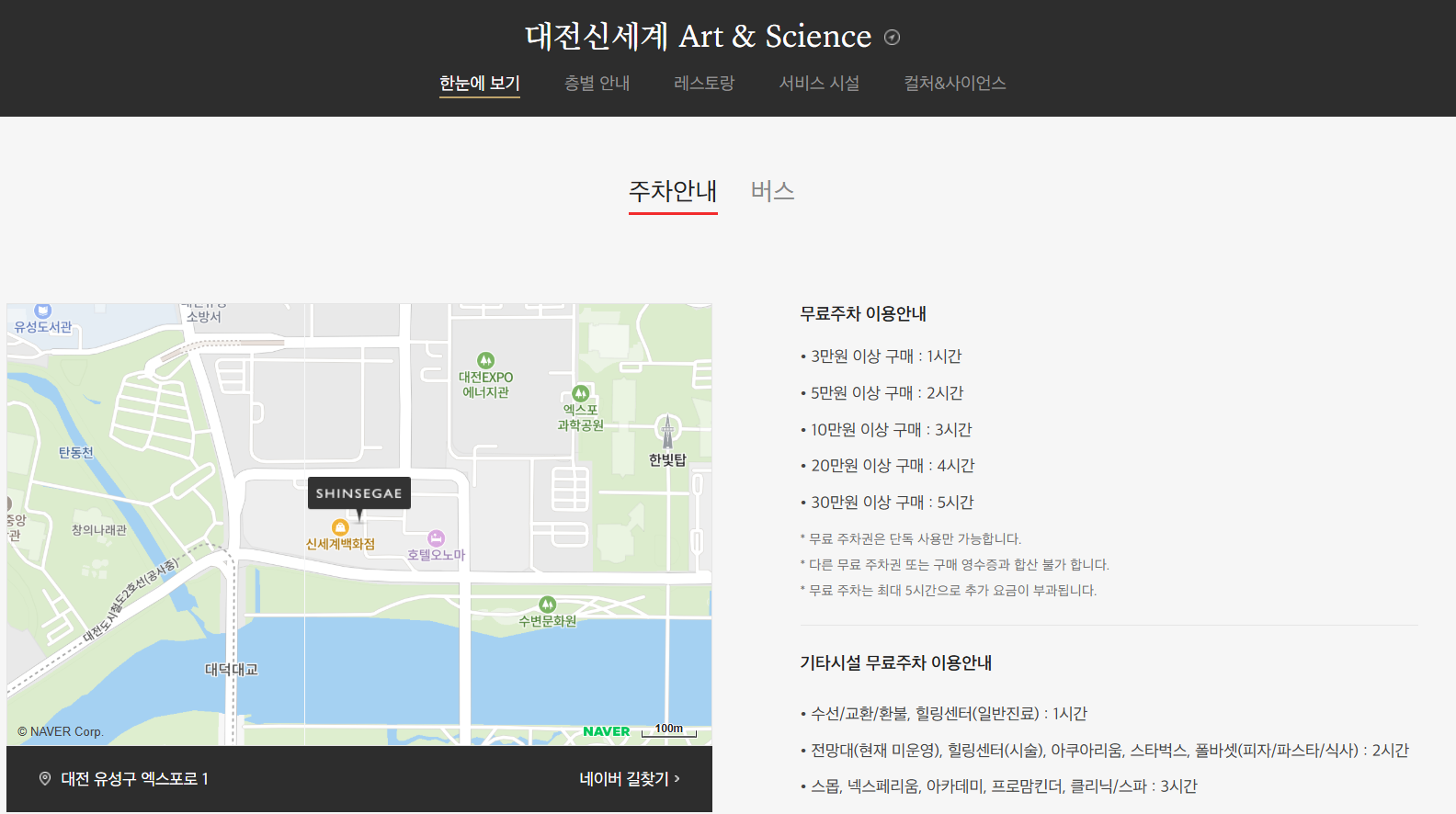 신세계 백화점 점포 안내에서 점포별 주차 안내를 상세하게 확인할 실 수 있어요.