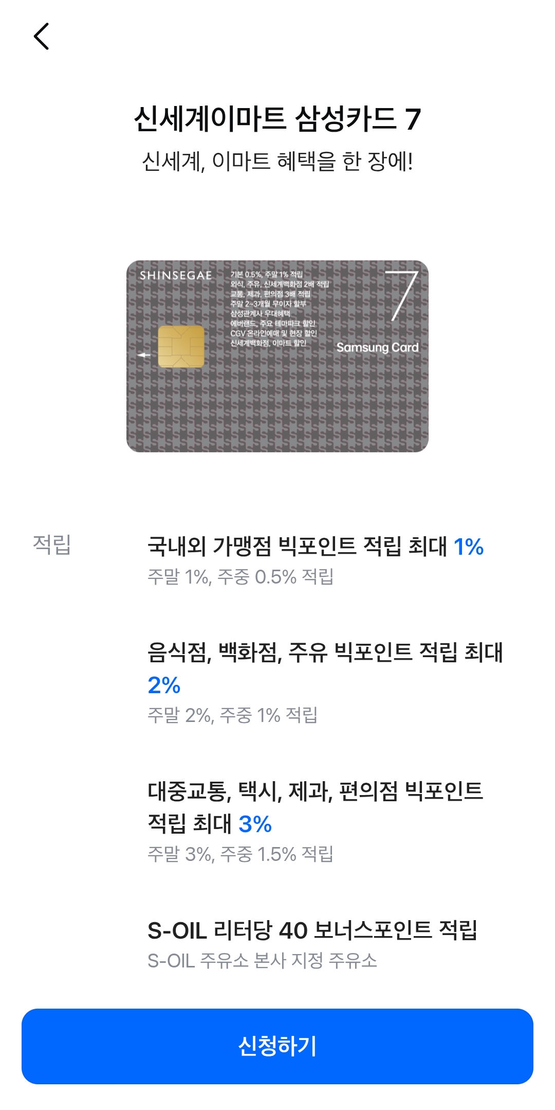 1.  신세계 삼성카드 소지 후, 신세계백화점 내 카드센터 방문