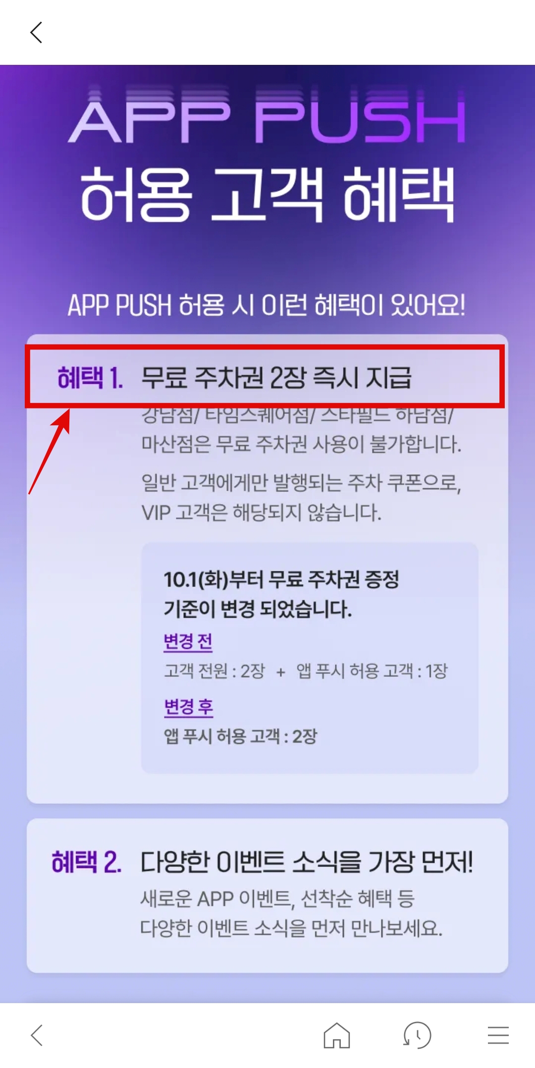 4. 구매 후 자동으로 주차 혜택 적용됨