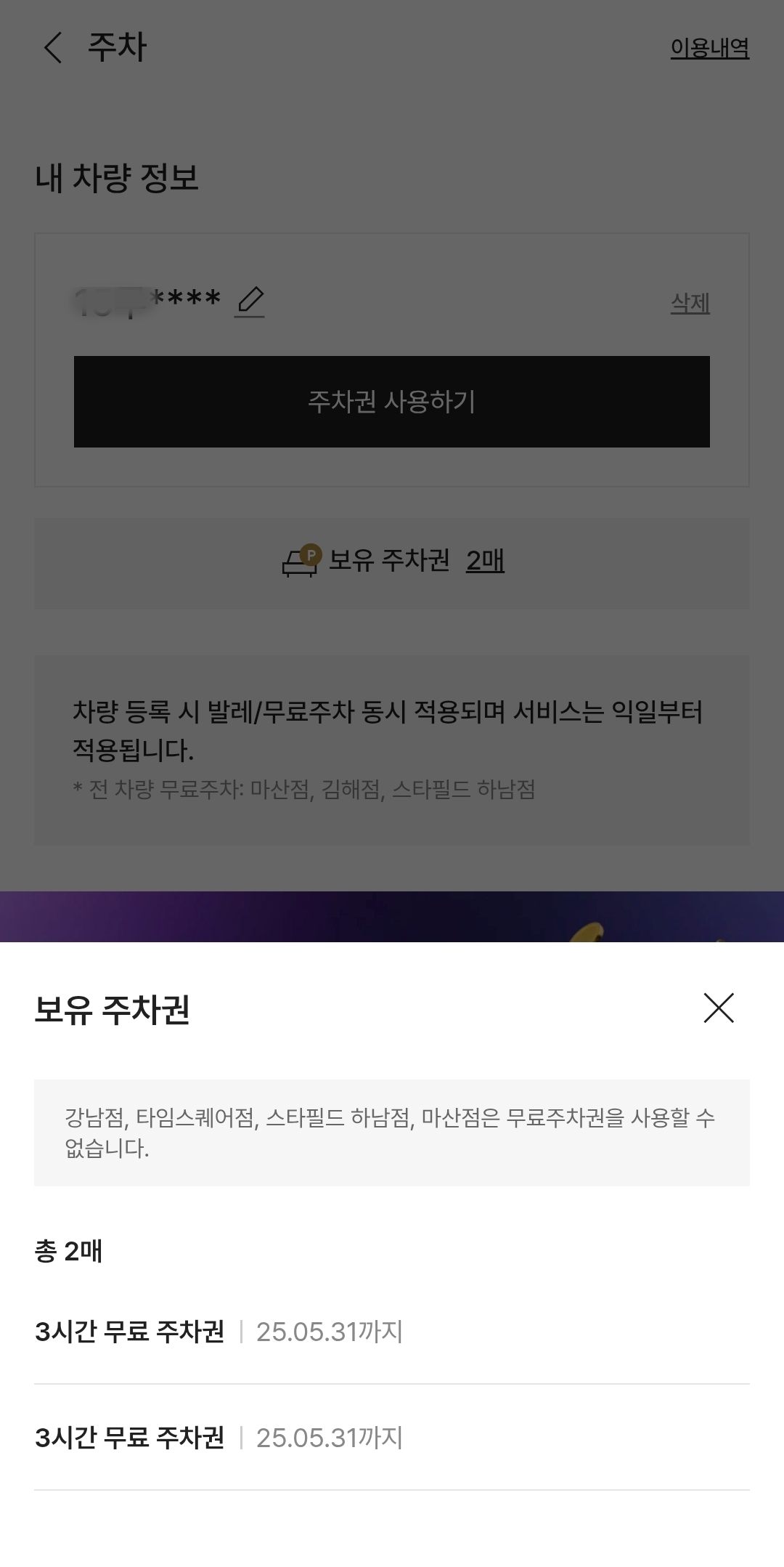 • 하루 1매만 사용 가능하며, 최대 3시간까지 무료 주차가 가능합니다.