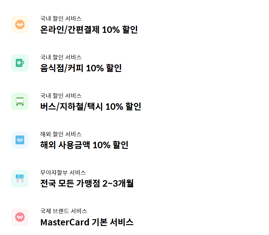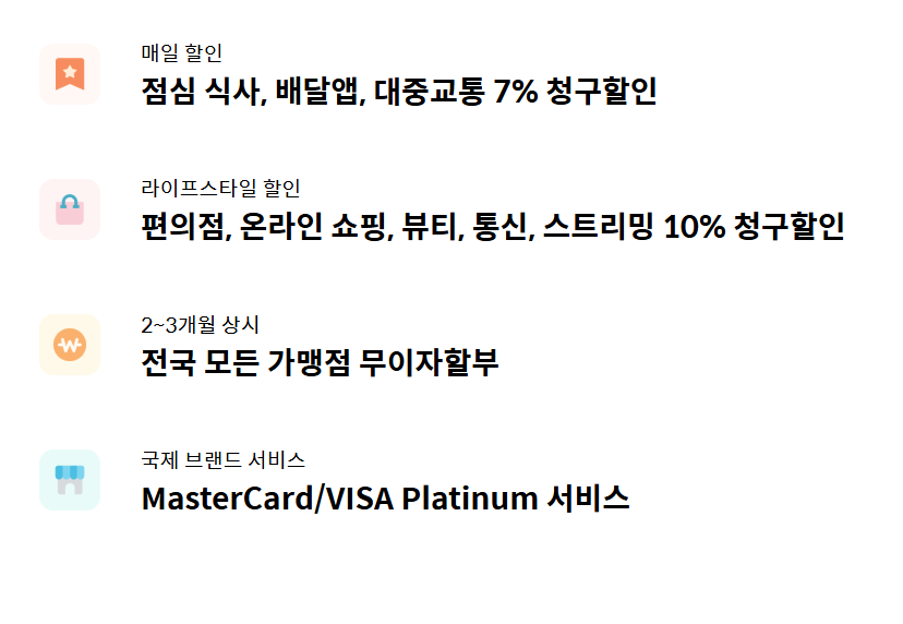 • 대중교통, 커피, 편의점, 통신비 10% 청구 할인