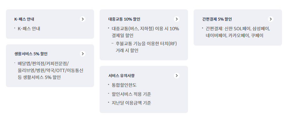 • 대중교통, 주유, 통신비 할인
