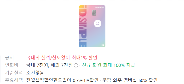 1. 삼성 iD SIMPLE 카드