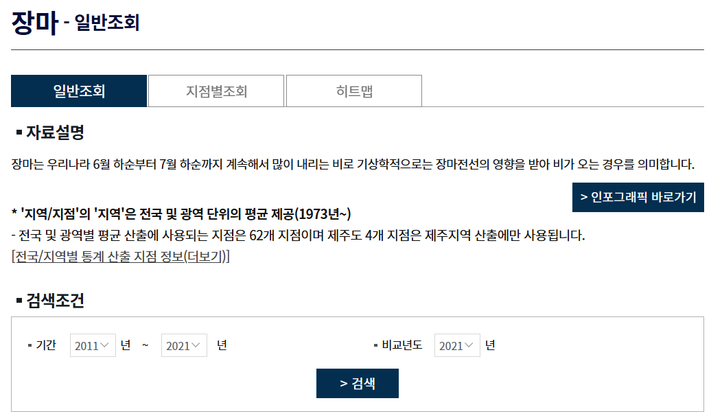 제주도는 장마가 가장 빨리 시작되며, 강수일수와 강수량도 가장 많습니다.