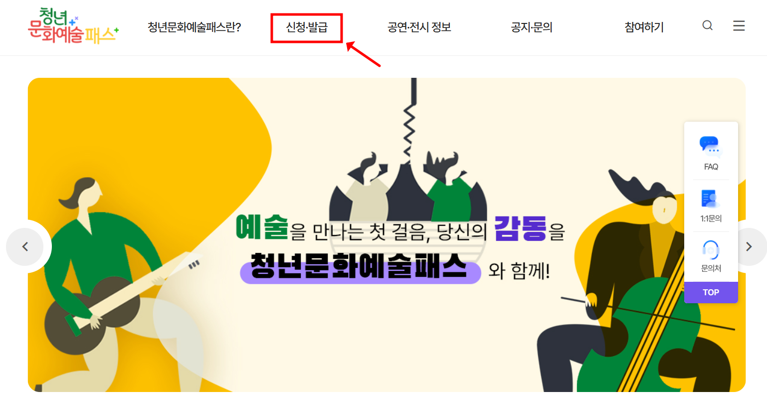 2️⃣ 청년문화예술패스 누리집 가입 후 신청