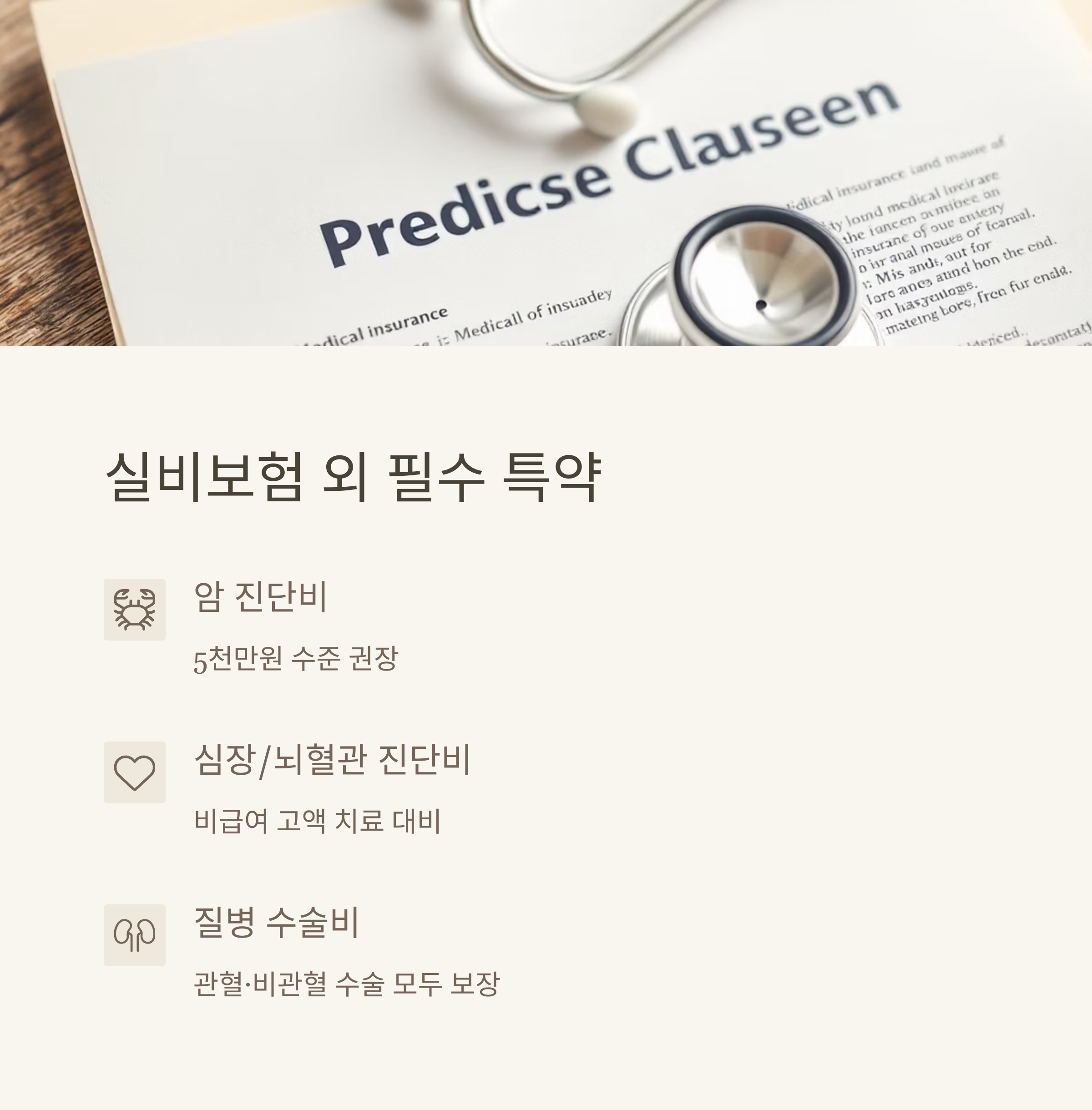 • 실손 외 보장 없다? 👉 진단비/수술비 특약 추가 필수