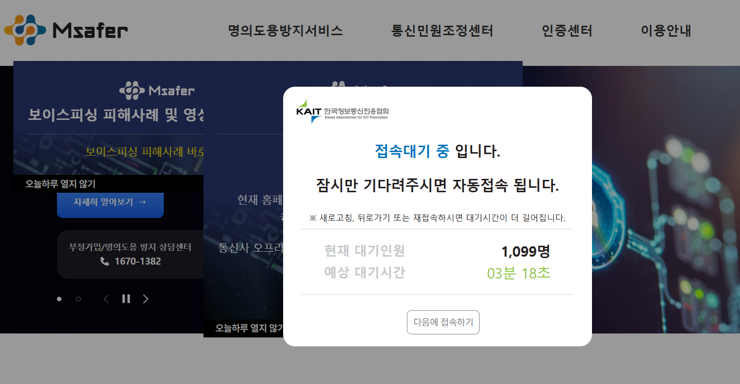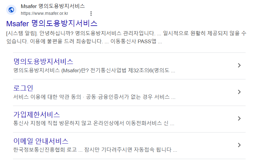 - Msafer 홈페이지에서 '명의도용 신고' 접수