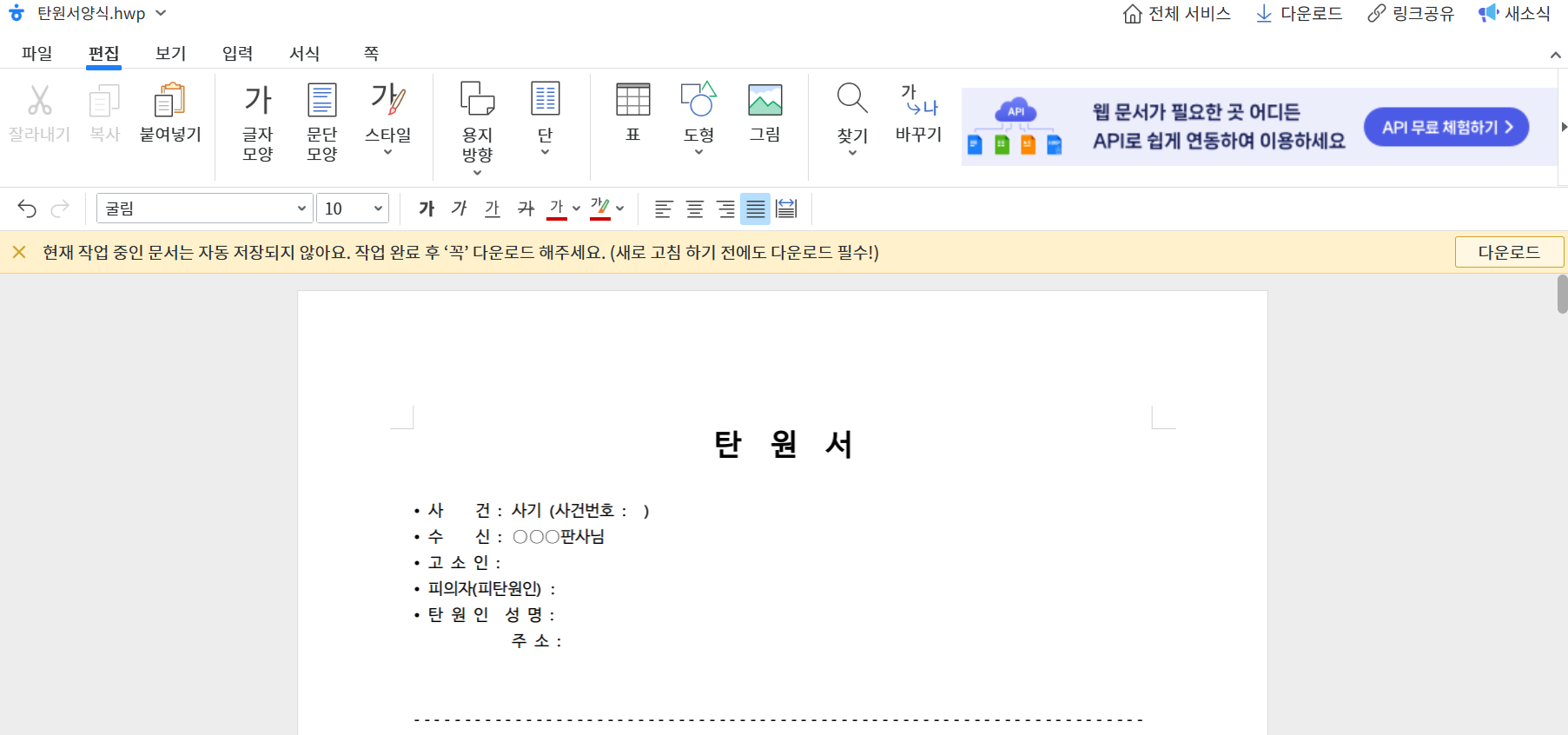 ✔ 표 삽입, 서식 편집 등 고급 기능