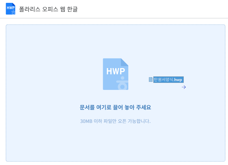 ✔ 프로그램 설치 없이 HWP 문서 열기 가능