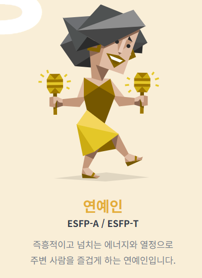 - 주요 특징: ESFP는 유쾌하고 활기차며, 주변 사람들에게 에너지를 불어넣는 분위기 메이커입니다. 타인을 즐겁게 해주는 것을 좋아하며, 순간을 즐기는 성향이 강합니다. 감각적이고 감정적인 면이 두드러져, 예술적이거나 창의적인 분야에서도 뛰어난 재능을 발휘할 수 있습니다.