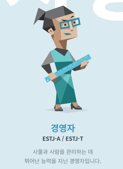- 주요 특징: ESTJ 유형은 강한 리더십과 조직력을 자랑하며, 체계적으로 일을 수행하는 것을 중요하게 여깁니다. 규칙과 전통을 중요시하며, 목표 달성을 위해 효율적으로 움직입니다. 현실적이며 책임감이 강해, 주변 사람들에게 신뢰를 줍니다.