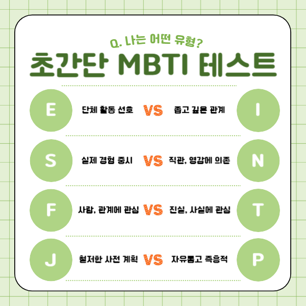 | mbti 성격유형 해석, 무료 검사하기(E성향 8가지) (3) | 2024.10.26 |