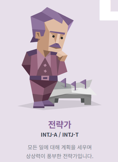 - 주요 특징: INTJ 유형은 계획을 세우고 목표를 달성하기 위해 노력하는 전략가입니다. 창의적이고 독립적인 사고를 통해 문제를 해결하고자 하며, 일상보다는 새로운 아이디어와 혁신을 선호합니다. 대체로 자신만의 세계에 몰두하는 것을 좋아하며, 목표를 달성하는 과정에서 논리적이고 철저한 접근을 합니다.